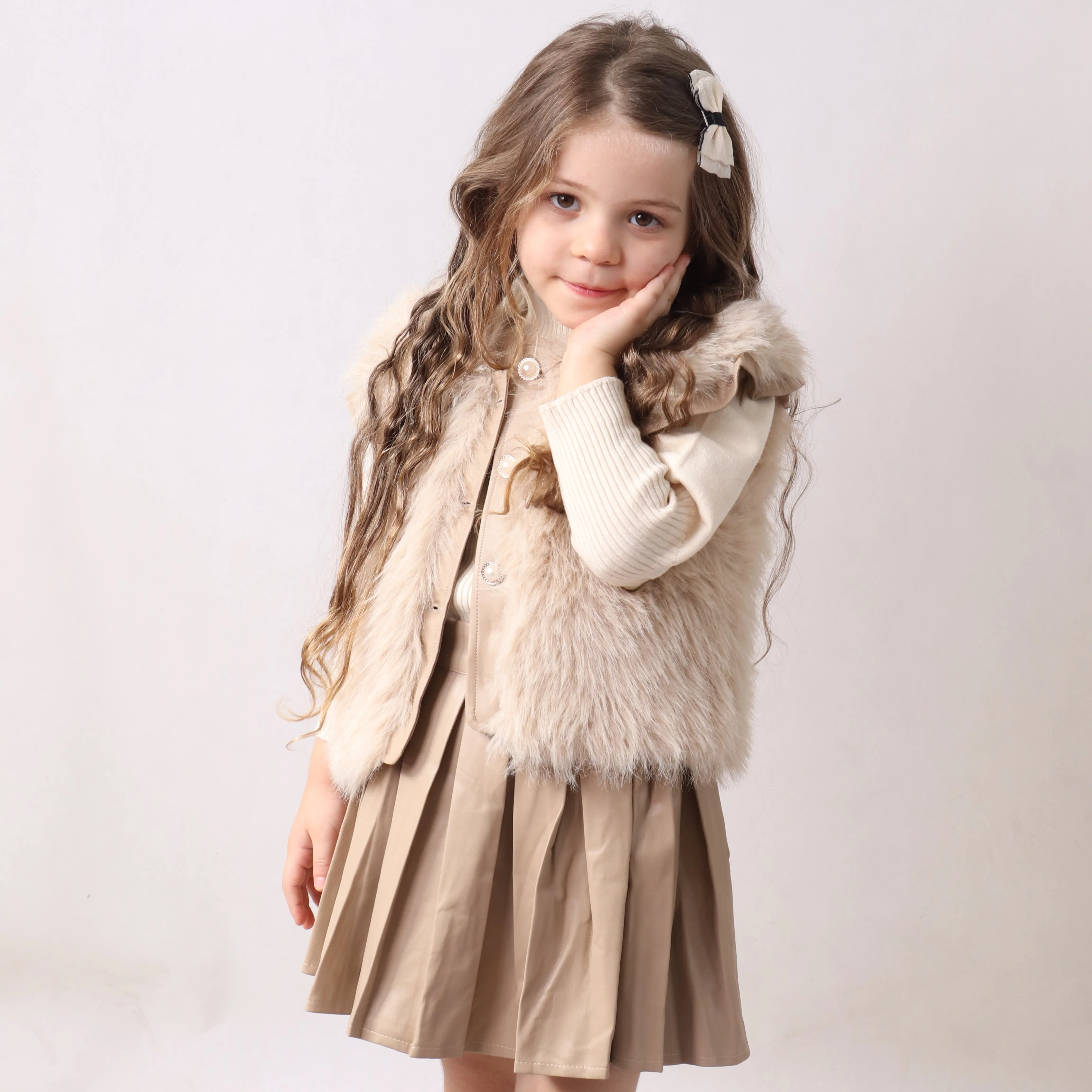 ست بافت، پافر و دامن چرم دخترانه کد ۳۱۹۸؛ ترکیبی خاص برای استایل پاییزی کودک شما